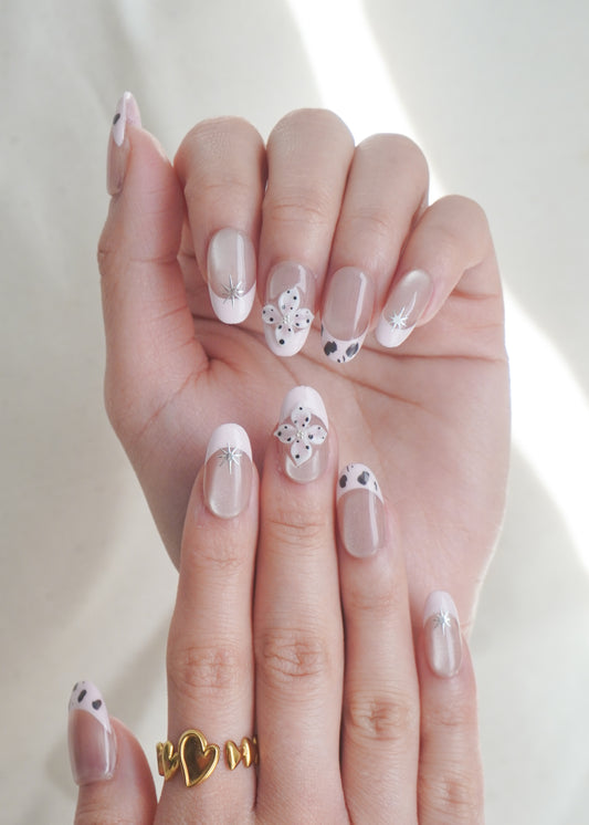 The UV cured sticky tabs and nail lamp are a game changer. ENES nails are so pretty and this helps keep them pretty nails maintained and on more securely, it feels more sturdy when I used it and able to wash my hands and do chores without worrying it’ll pop off. I definitely recommend for those that love to wear it longer period of time! The packet also guides how to apply on properly, very helpful.