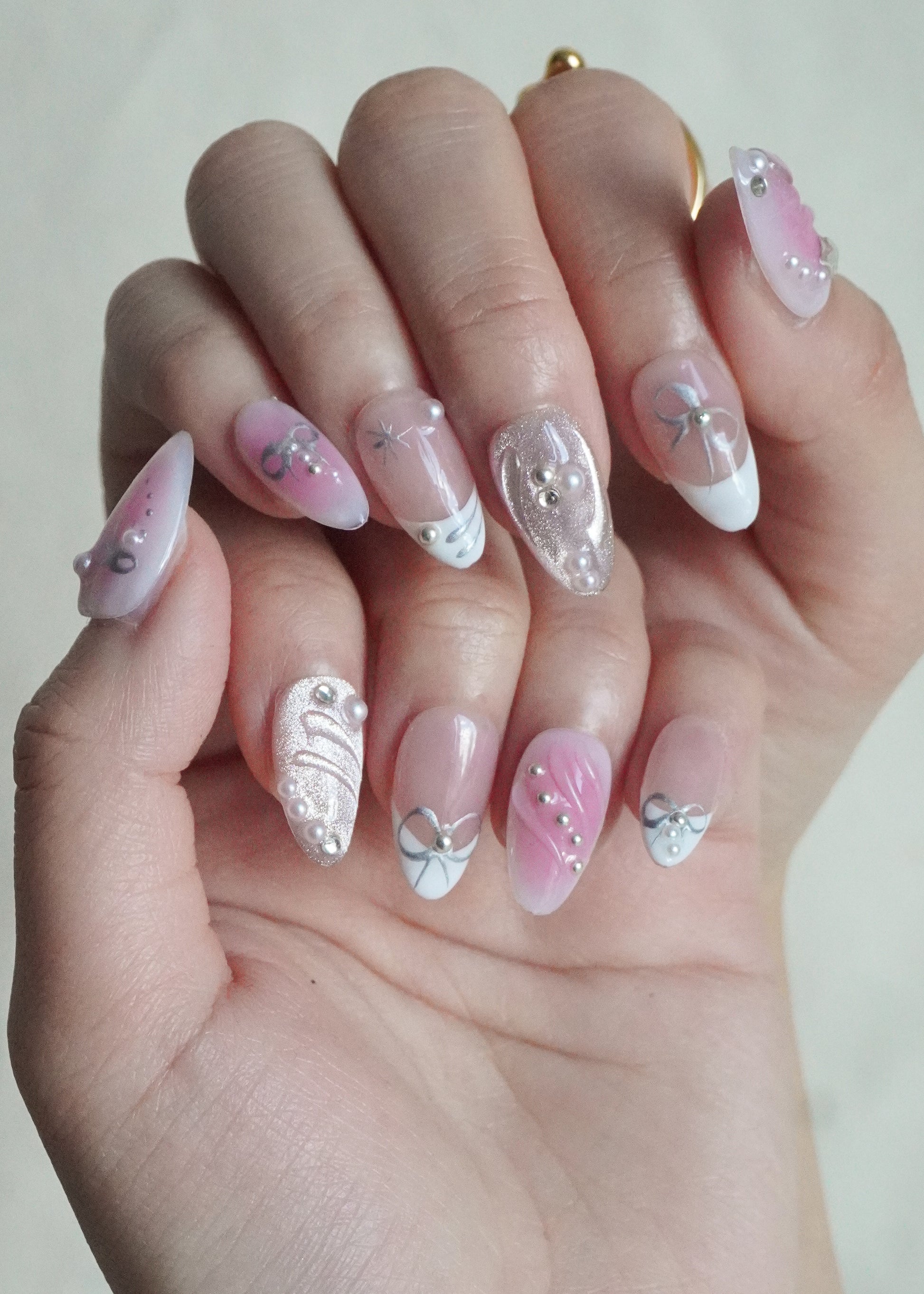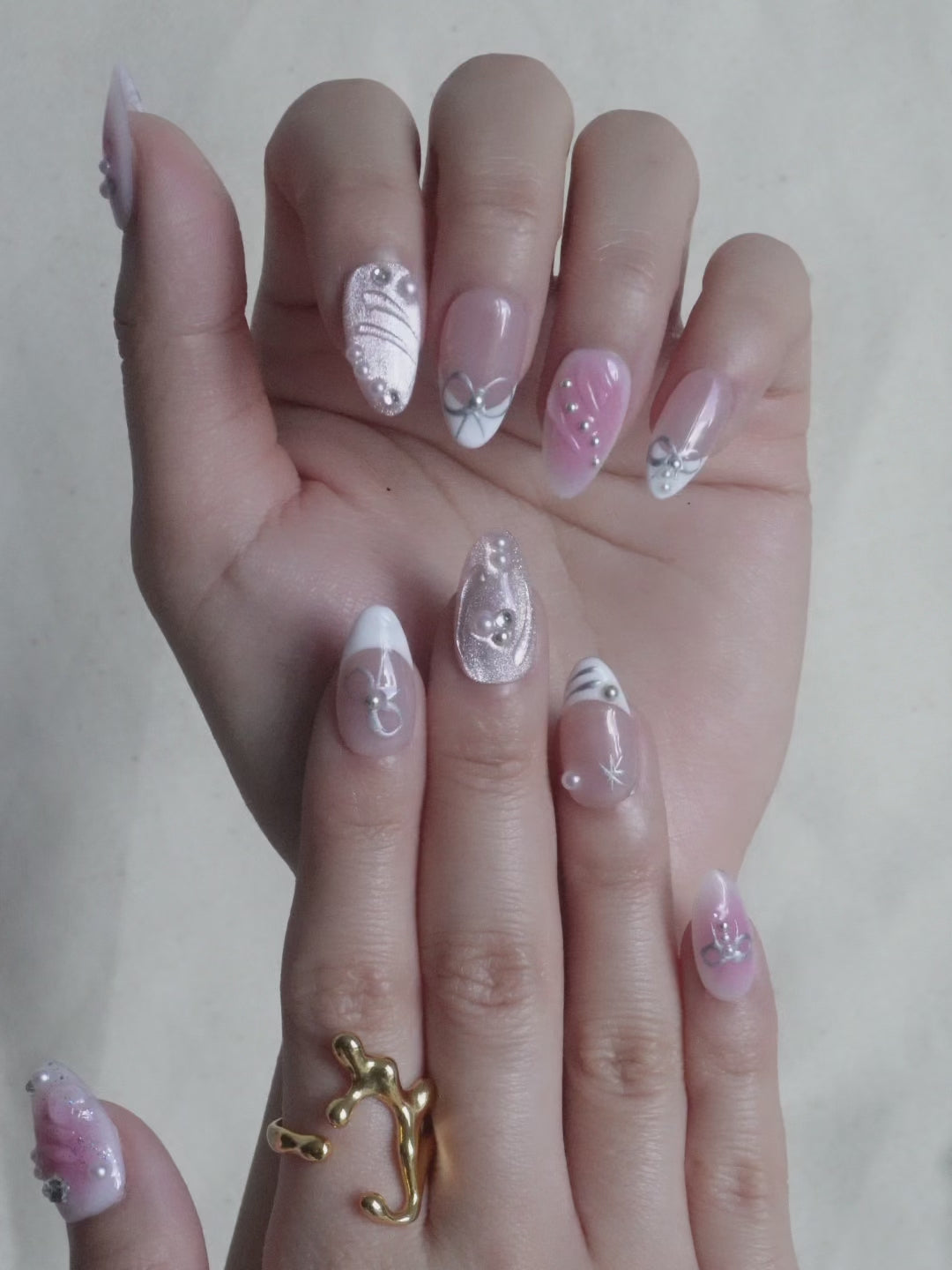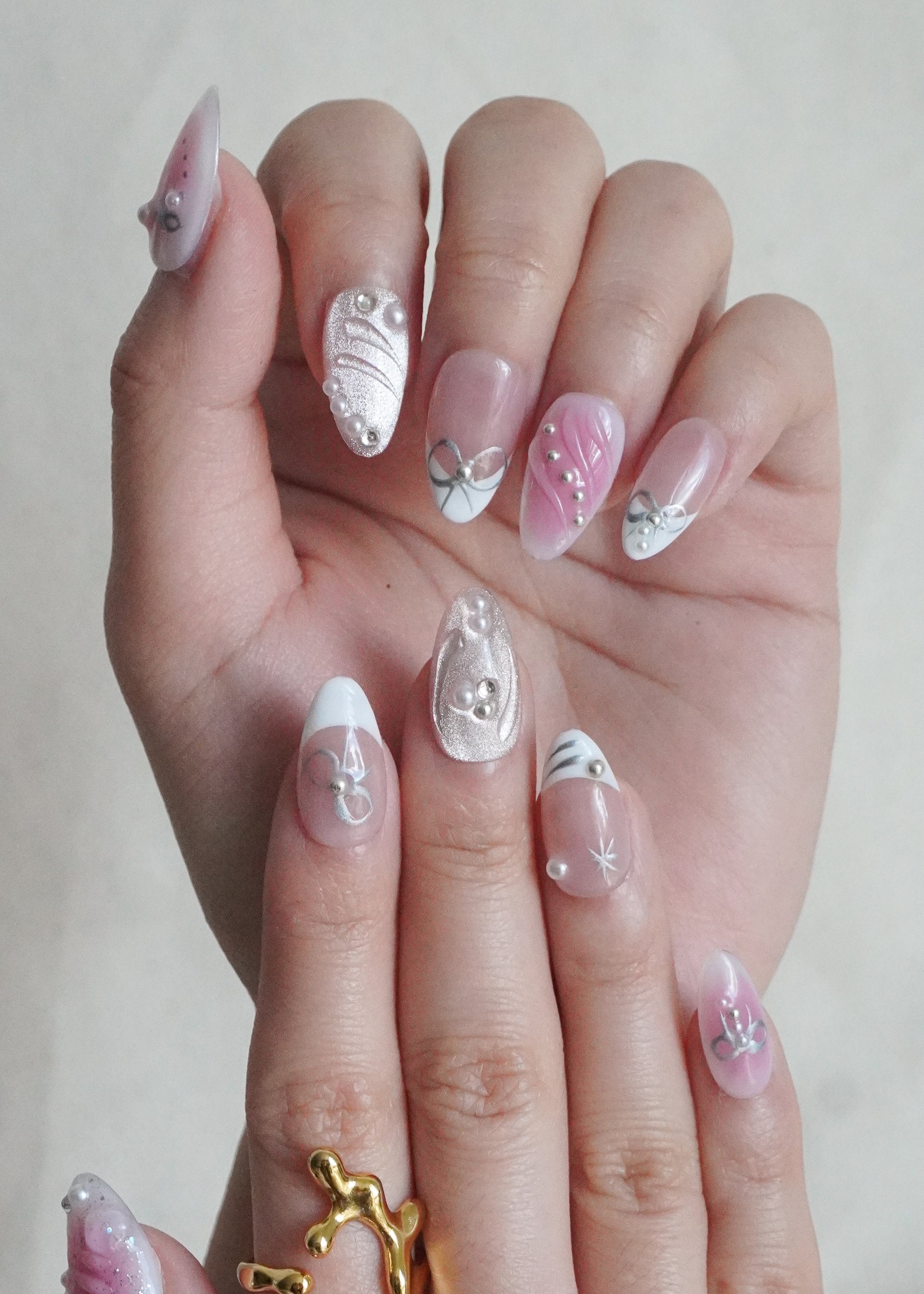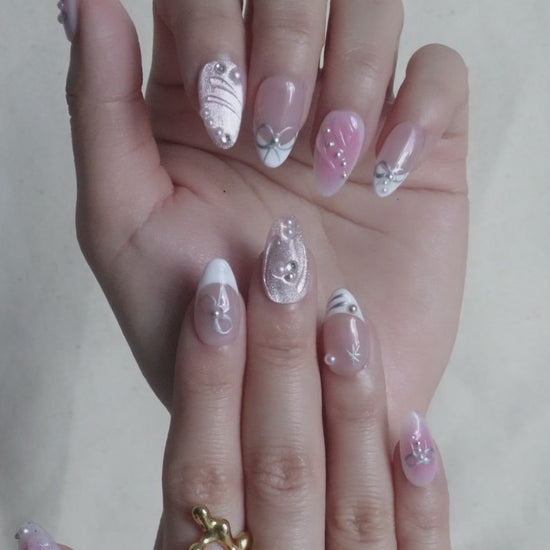 First Crush Press On Nail Set are inspired by gentle emotions and tender beginnings.Light and romantic, this set is designed for those quiet, fluttery moments that feel soft but unforgettable.