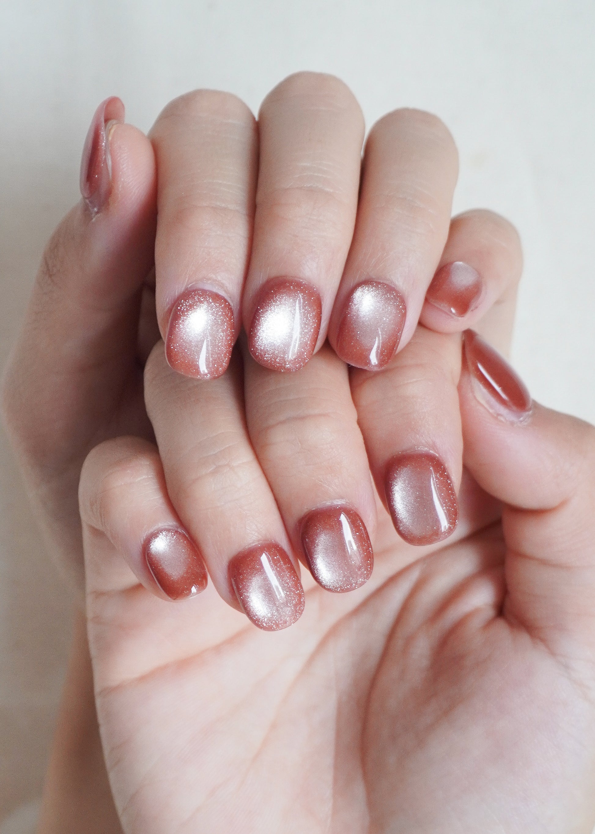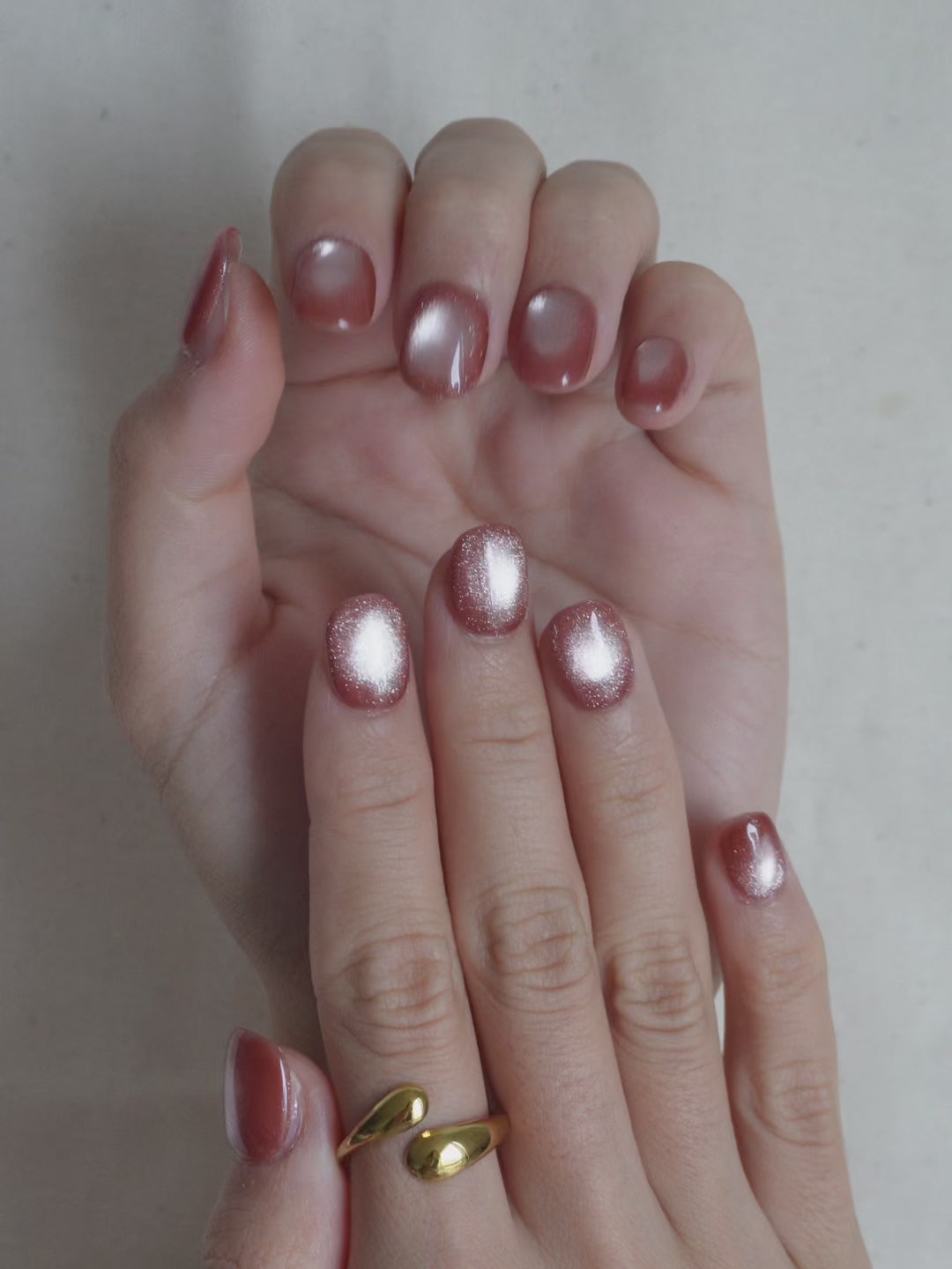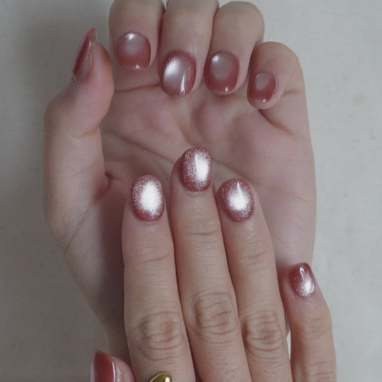 Golden Toffee Press On Nail Set glows with a soft caramel base kissed with golden shimmer. The subtle sparkle and cat eye effect bring warmth and radiance, making these nails the perfect choice for cozy autumn days, elegant evenings, or whenever you want a touch of golden charm.