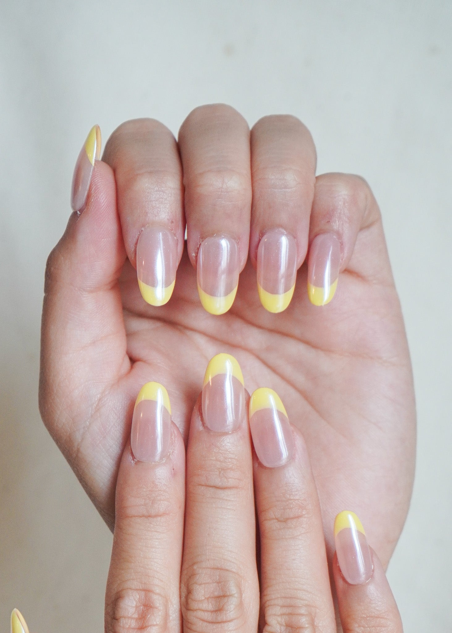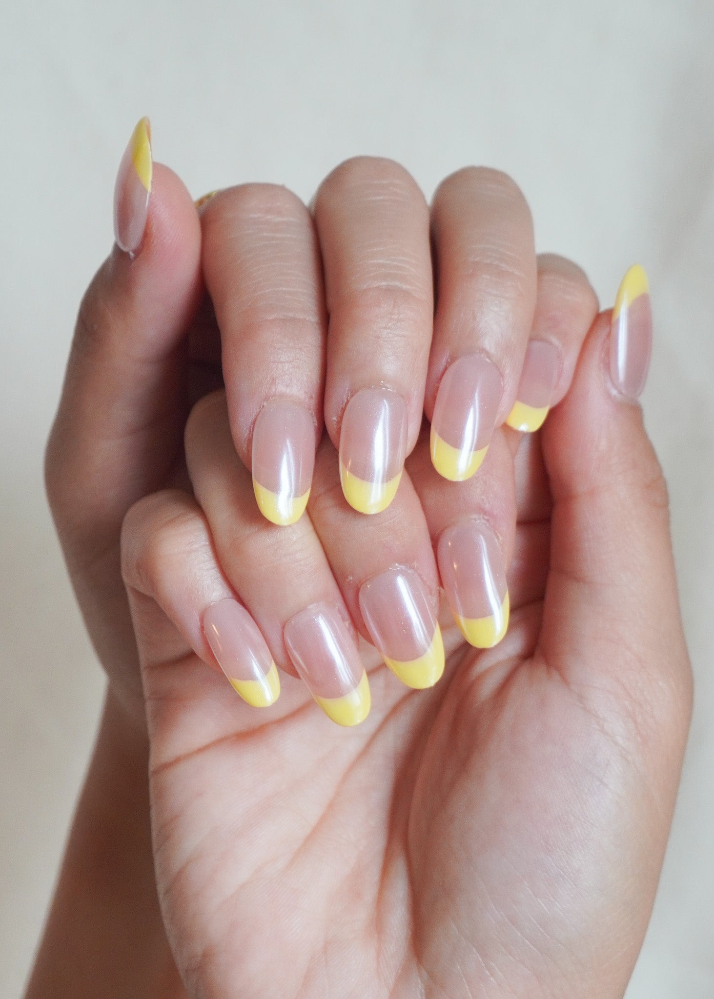 Limoncello French Tip Press On Nail Set is your go-to set for that clean girl aesthetic with a citrus twist. Bright, crisp, and effortlessly sunny. Featuring glossy yellow French tips on a natural base, this look is playful without trying too hard , like your favourite summer drink, in nail form.