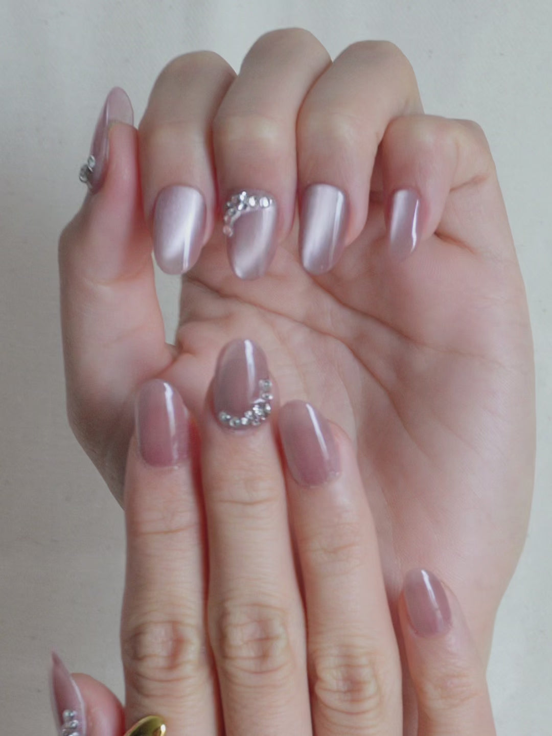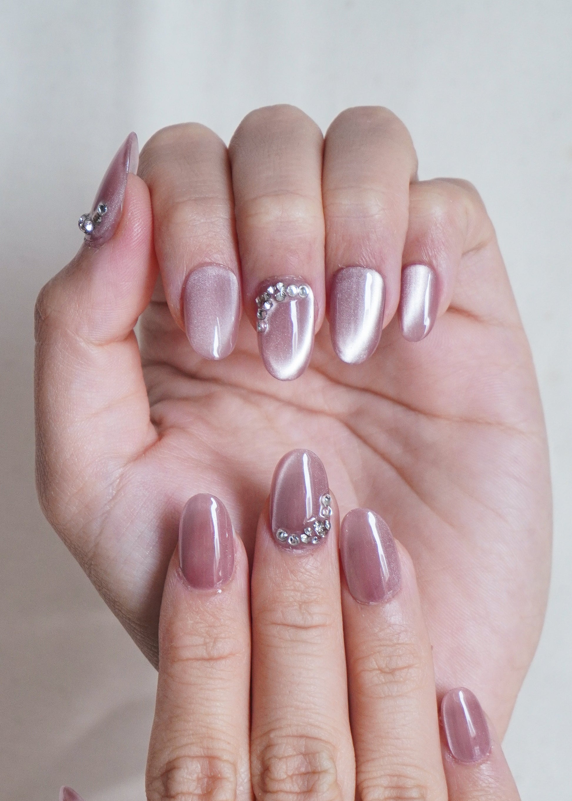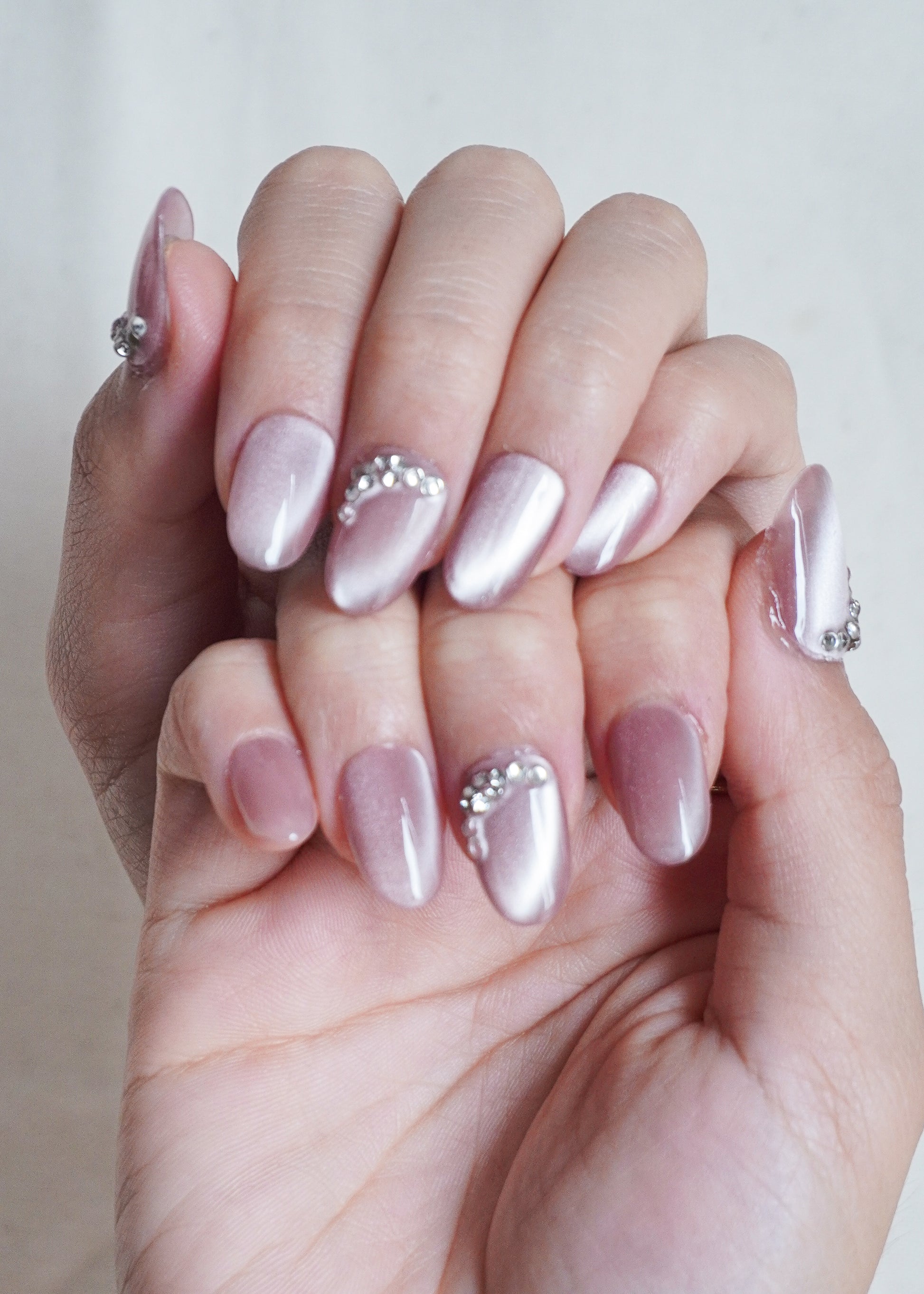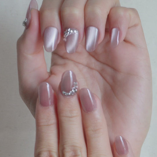 Moonlit Veil Press On Nail Set captures the magic of twilight with its soft lilac shimmer and pearlized glow. Adorned with delicate crystal accents, this set reflects light like moonbeams on water, adding a touch of ethereal elegance to your look.