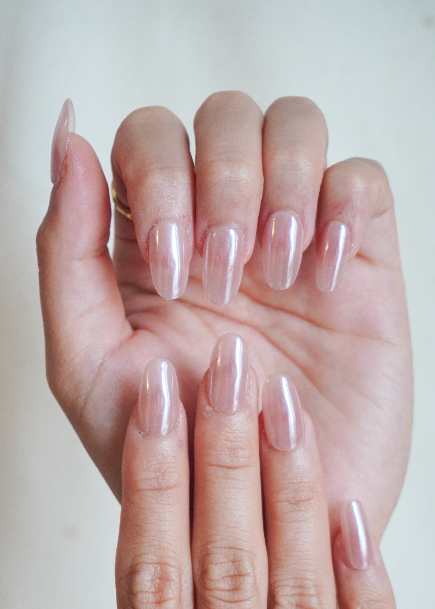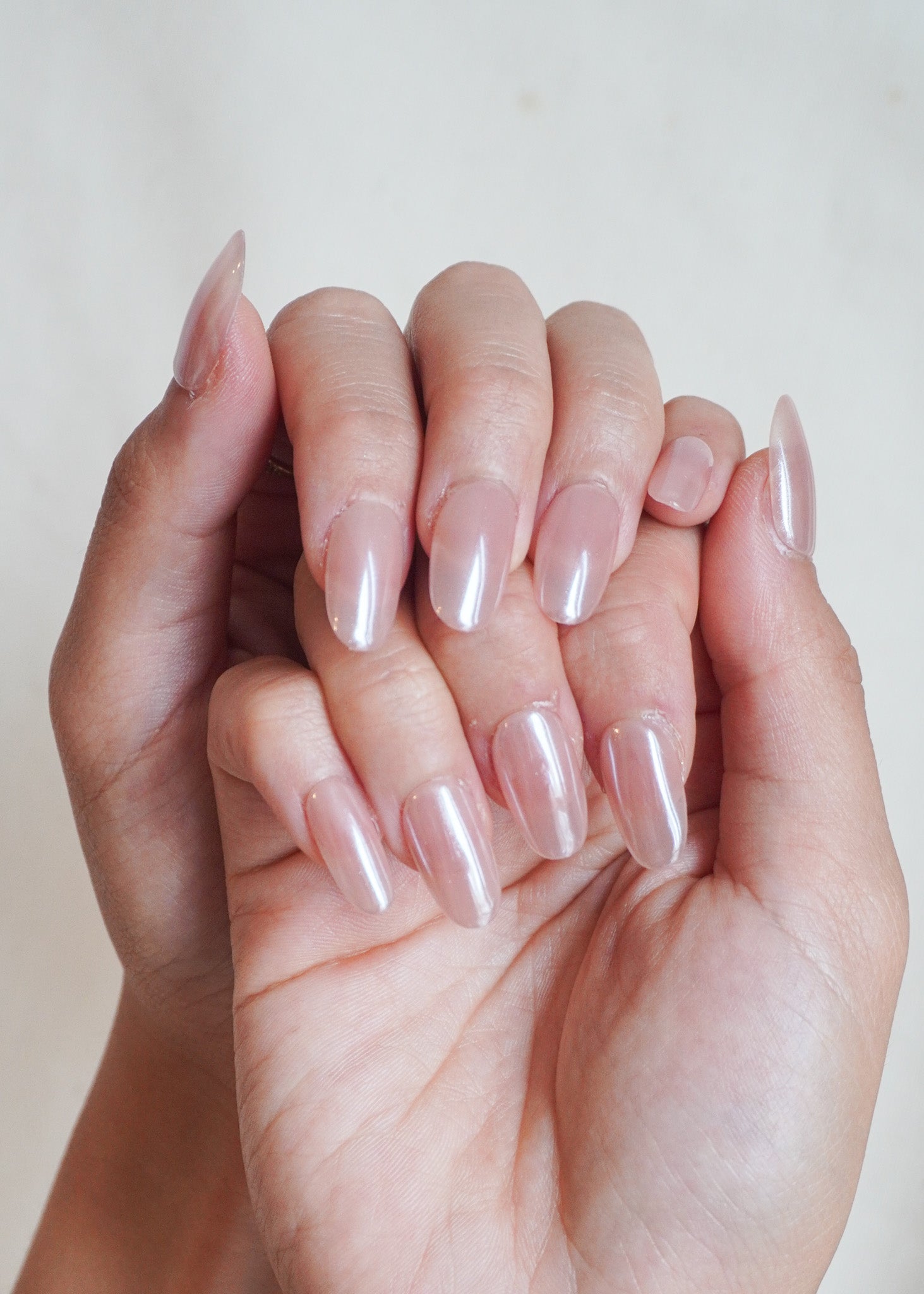 Nude Glow Press On Nail Set brings soft radiance to your everyday look. With a translucent pinky-nude base and subtle pearl shimmer, it gives your nails that natural glow