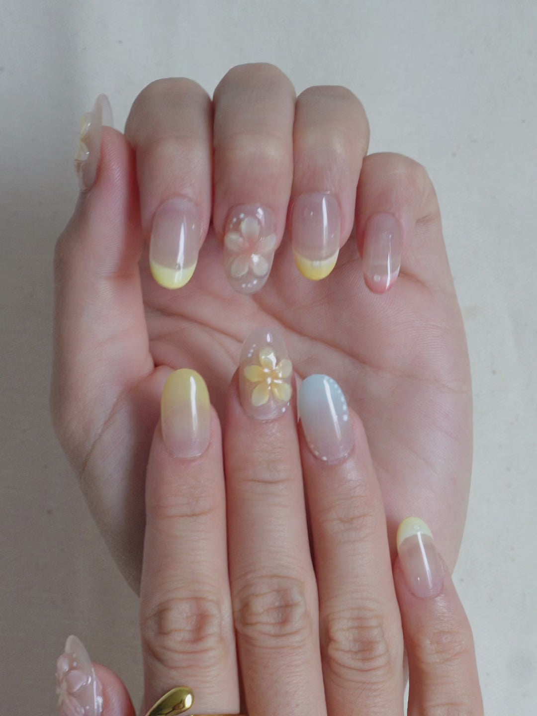 Pastel Garden Press On Nail Set brings a fresh burst of spring with the mix of yellow, pink, and blue tones adds a cheerful touch, making this set perfect for sunny days, picnics, or simply uplifting your everyday style.