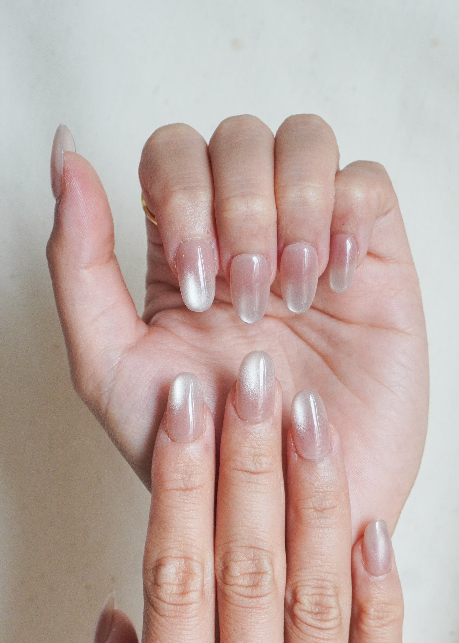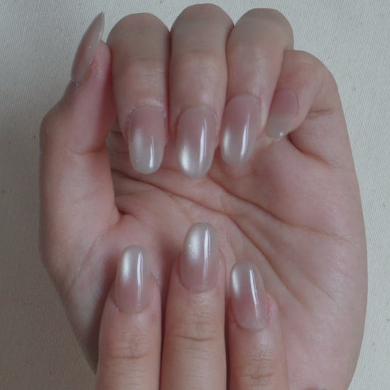 Pearl Fade Press On Nail Set brings together softness and shine in one elegant gradient. With a translucent nude base that fades into a frosted white shimmer, this set delivers a clean, polished look with a touch of glow. Think bridal beauty, quiet luxury, and everyday minimalism.